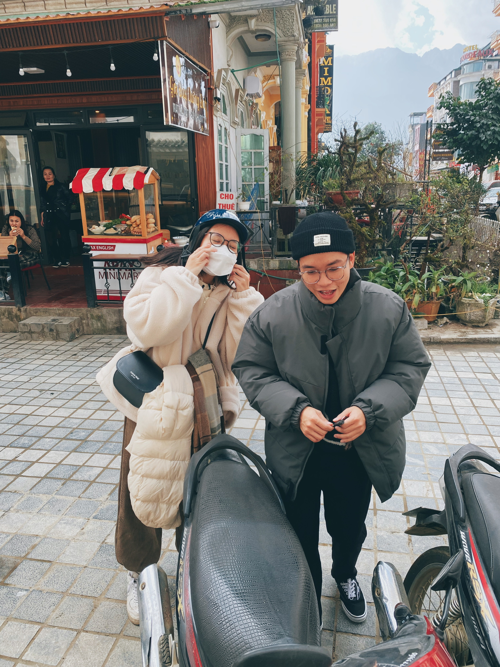Sau bữa cà phê, chúng tớ đã gửi xe ở một góc đường Sapa và đi dạo phố. Sapa là một thị trấn nhỏ nhưng rất đẹp và sôi động. Mọi người đã đi check in ở nhiều địa điểm nổi tiếng, như con ngõ Cầu Mây, nơi có nhiều quán ăn và cửa hàng lưu niệm; Quảng trường Sapa, nơi có đài phun nước , Sun Plaza Sapa, nơi có ga cáp treo lên đỉnh Fansipan; và Nhà thờ đá, một công trình kiến trúc cổ kính và mang đậm dấu ấn của người Pháp.