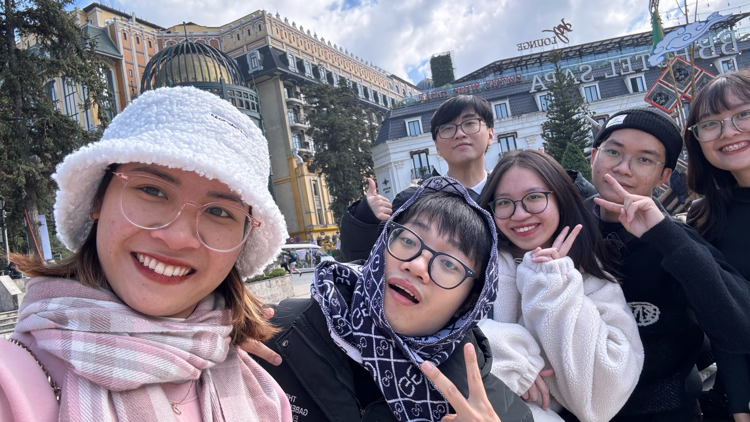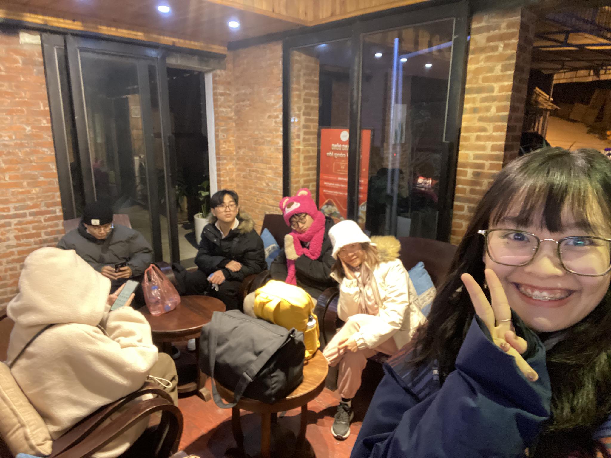 Hành trình đầu tiên của chúng tớ ở Sapa bắt đầu từ lúc 4h sáng, khi chúng mình vừa xuống xe Kadbus sau chặng đường dài từ Hà Nội. Cả đoàn đã cảm nhận được cái lạnh của miền núi, khiến ai cũng phải ôm chặt áo khoác, khăn và mũ len. Chúng mình đã tìm đến Gạo Coffee để cất hành lý và nghỉ ngơi đến khi trời sáng.