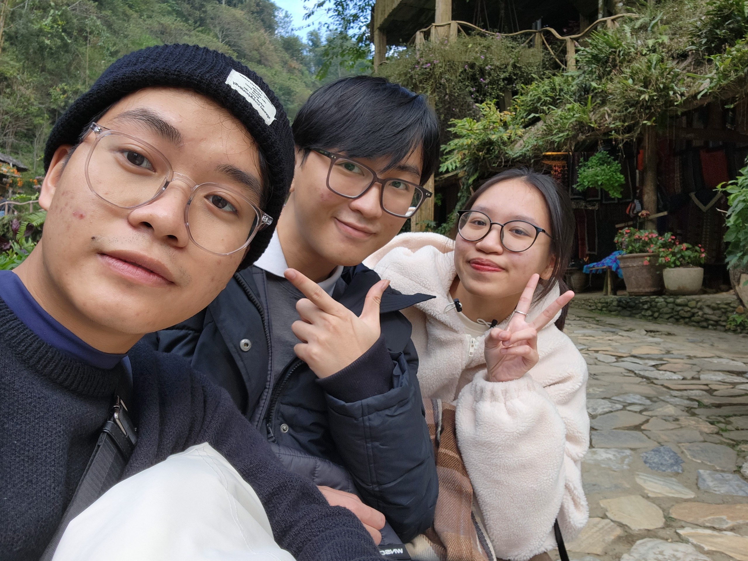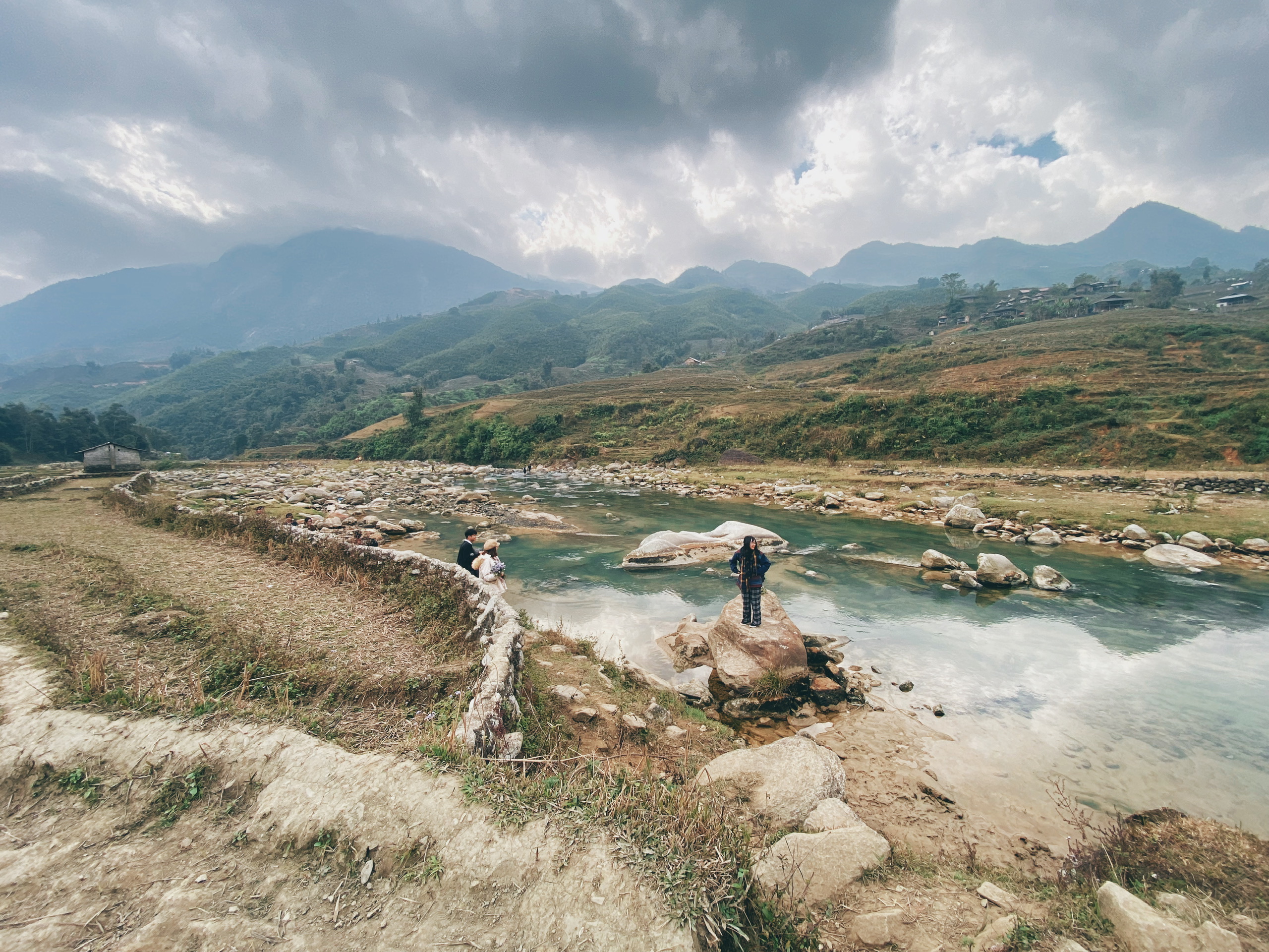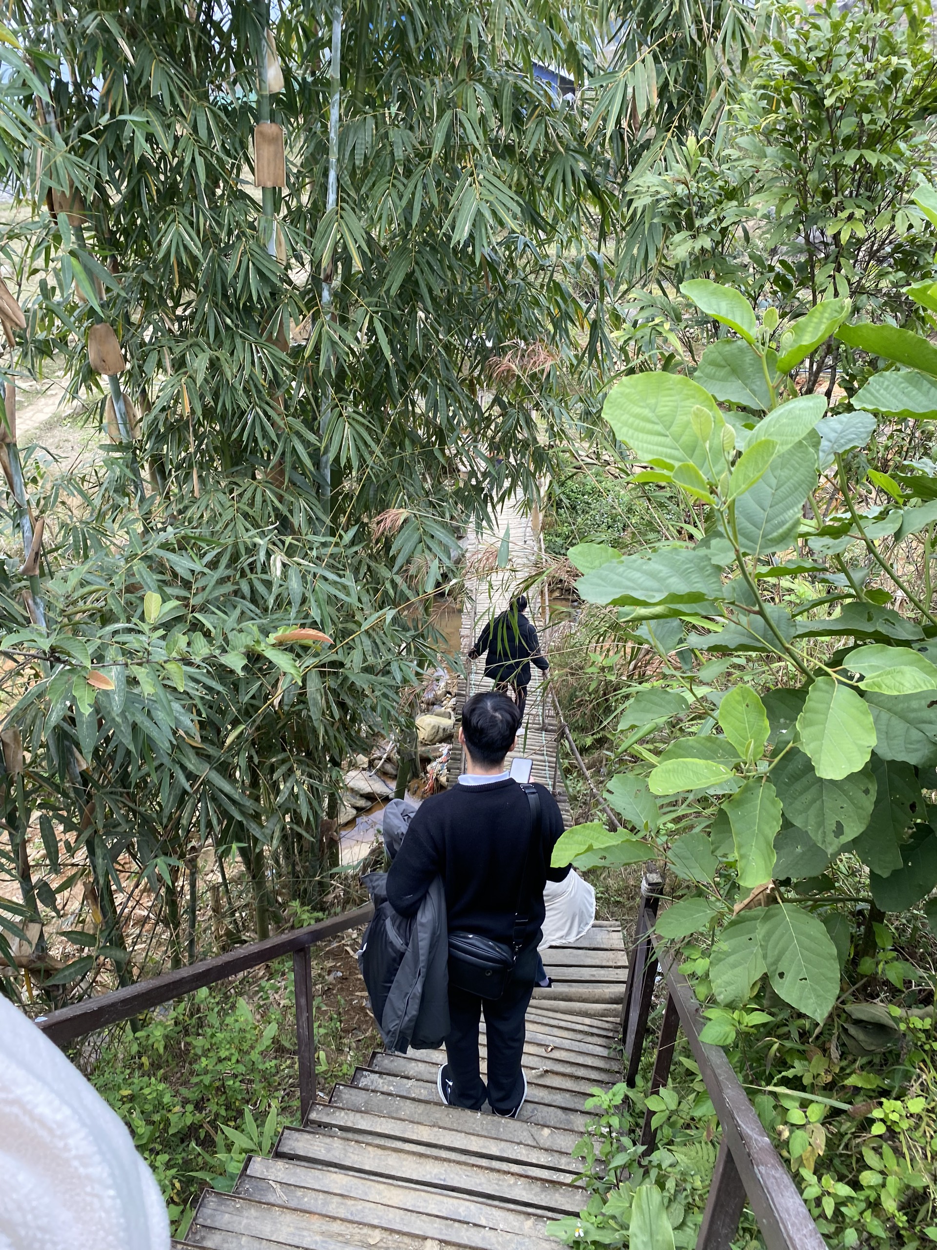 Tại đây, chúng tôi trò chuyện về những gì mọi thứ trong năm cũ cũng như mong muốn dự định cho năm sau. Như các bạn cũng đã biết, mình thì chả có gì để mà nói :v. Sau khi uống xong cà phê, chúng mình quyết định đi bộ xuống thung lũng Tả Van, để khám phá thêm về cuộc sống và văn hóa của người dân nơi đây. Cả đoàn gặp mấy em bé bản, những đứa trẻ xinh xắn và tinh nghịch, đang chạy ra đón chúng mình. Chúng dẫn chúng tớ đi qua một cái cầu treo, dọc theo những tầng ruộng bậc thang, cho tới một con suối ở thung lũng. Chúng tớ được tắm trong nước suối mát lạnh, chơi đùa với những em bé, và nghe chúng kể về cuộc sống của mình (cái này trong mơ thôi 😊).