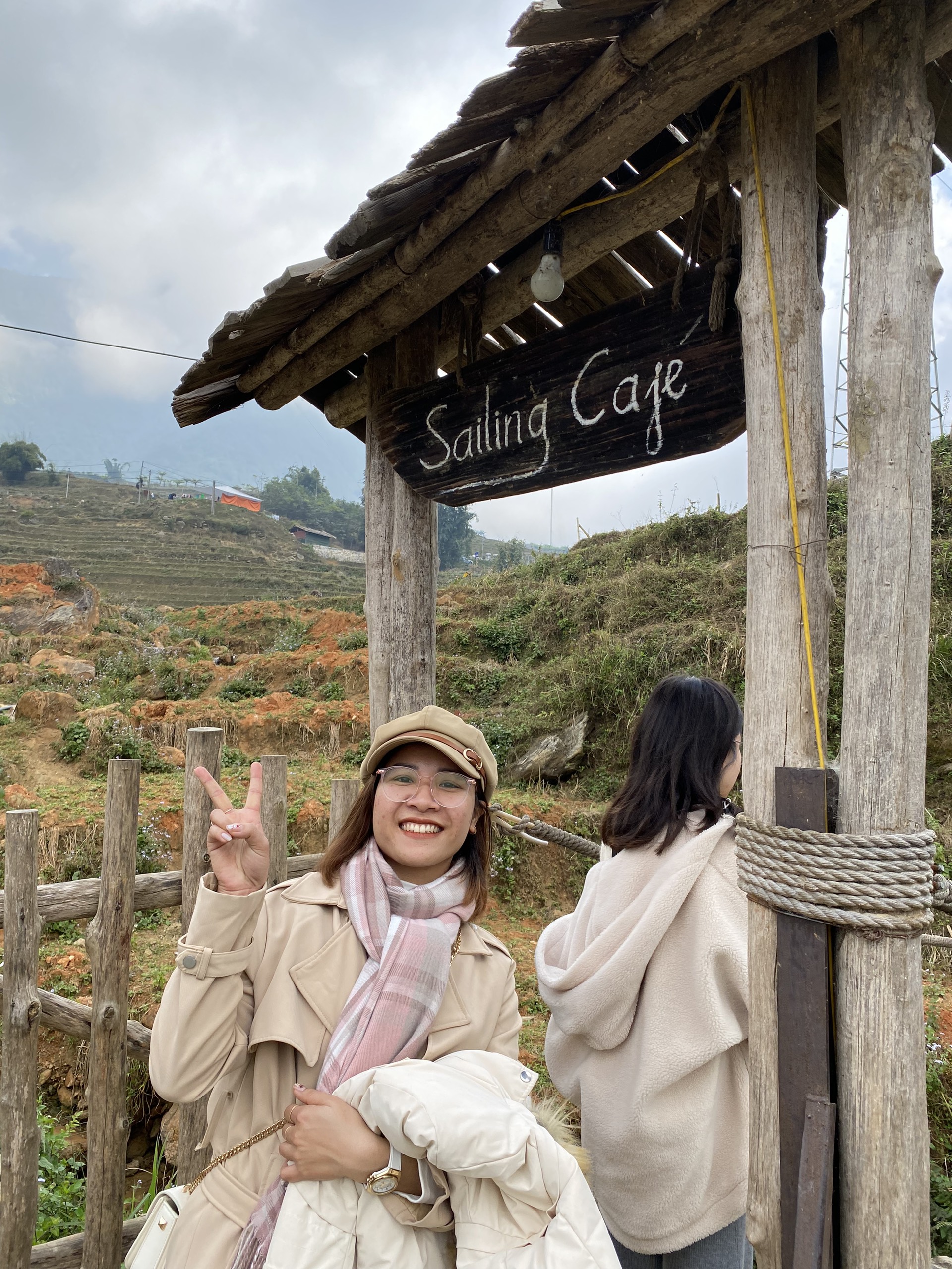 Điểm tiếp theo của hành trình đó là Sailling Sapa - một quán cà phê nổi tiếng ở Sapa, để tận hưởng một cốc cà phê sáng. Quán cà phê này nằm trên một cái lán dựng bên vách núi, trên những bậc ruộng bậc thang, và có view hướng thẳng về thung lũng Tả Van. Chúng tôi ngồi trên những chiếc ghế gỗ, uống những ly cà phê đậm đà, và ngắm nhìn khung cảnh tuyệt đẹp trước mắt. Mình cũng có thể nhìn thấy đàn trẻ em đang chơi đùa, và những con chim đang hót líu lo.