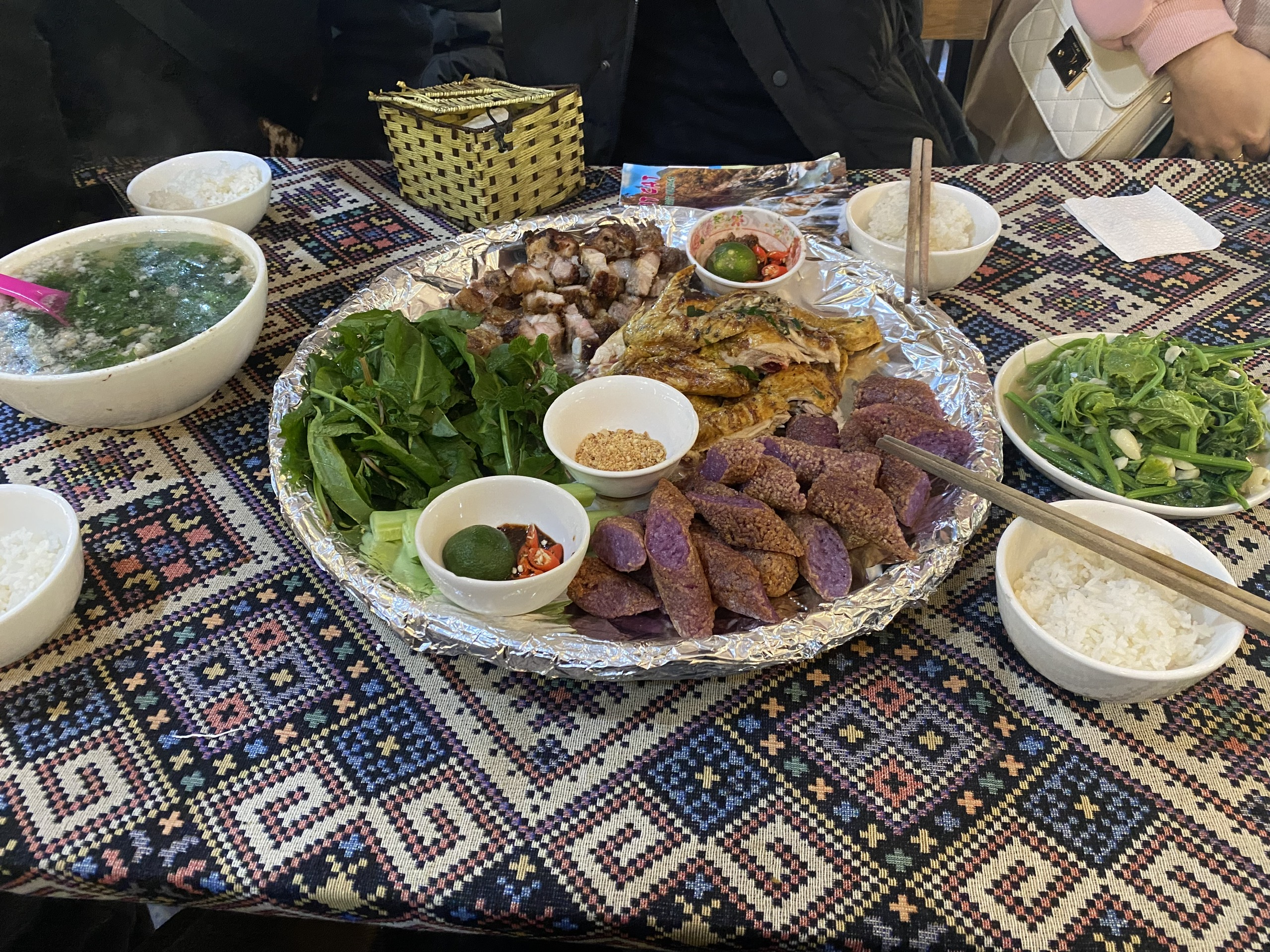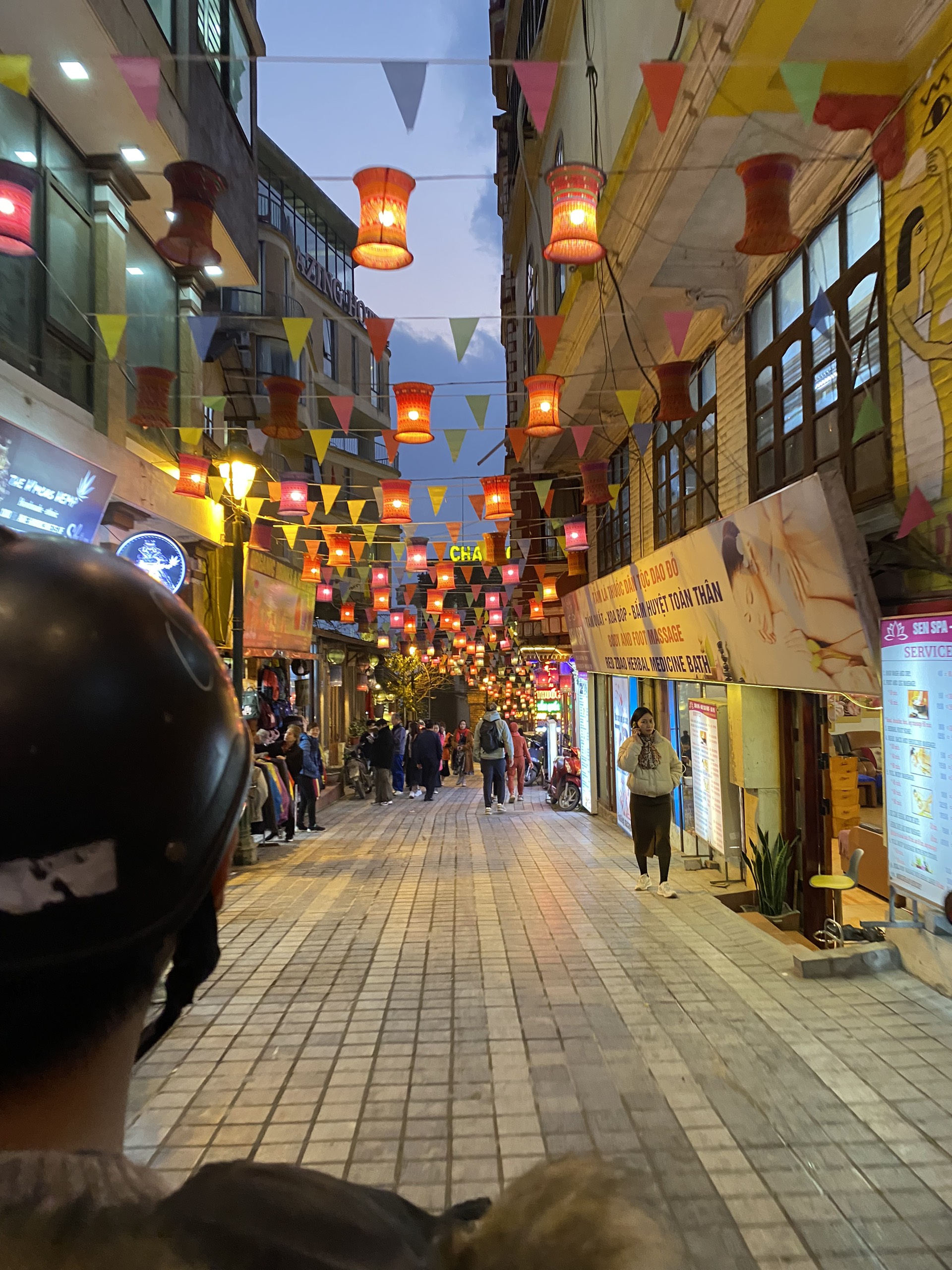 Dù không có một yêu cầu gì cả nhưng Anh Thành – người booking chuyến đi này cho chúng tớ - vẫn quyết định dẫn mọi người đi ăn tối và đi mua đồ. Để đến được quán Bún Chả Nga Cảnh, cả đoàn đã phải trả xe máy trước và đi xe điện. Đường phố Sapa rất đông đúc và tắc nghẽn, nên mất khá nhiều thời gian để di chuyển. Xe điện chạy bằng xăng đón chúng mình đi trên con dốc không thể nào dốc hơn, khiến chúng mình không thể nào hết hồn hơn. Bún chả ở đây ngon, nhưng cũng rất cay, với mình thì cay quá, nhưng mà lạnh thế này thì cay nó mới ấm lên được.