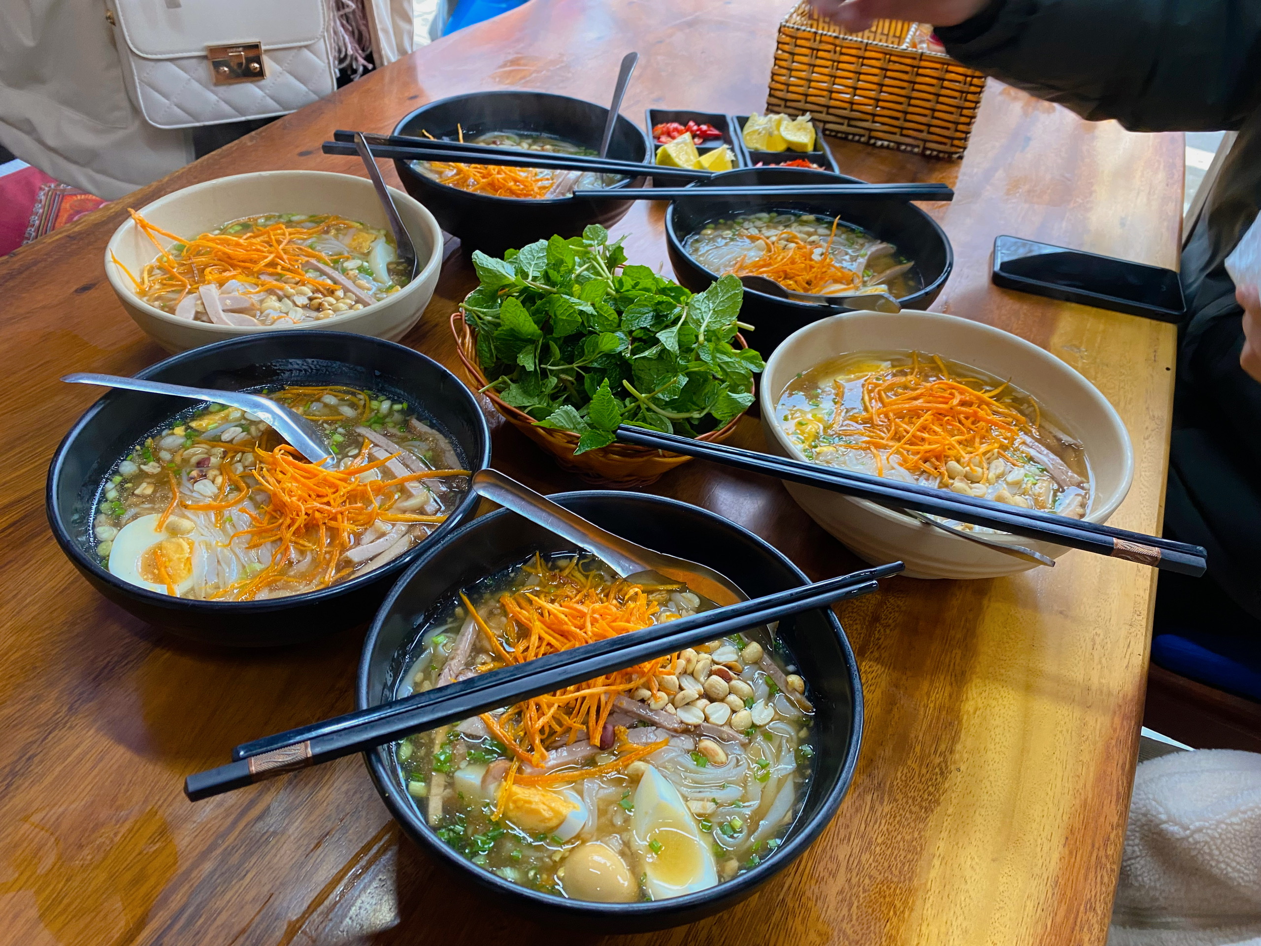 Lúc 8h sáng, chúng tớ đã dậy và đi ăn sáng tại quán Cốn Sủi A Lực, nằm gần nhà Gạo. Quán này nổi tiếng với món cốn sủi, một loại phở ? Mình cũng chả biết 😊 . Để mà mô tả thì nó cứ sánh sánh, kiểu ăn phở trộn bột sắn dây vậy.