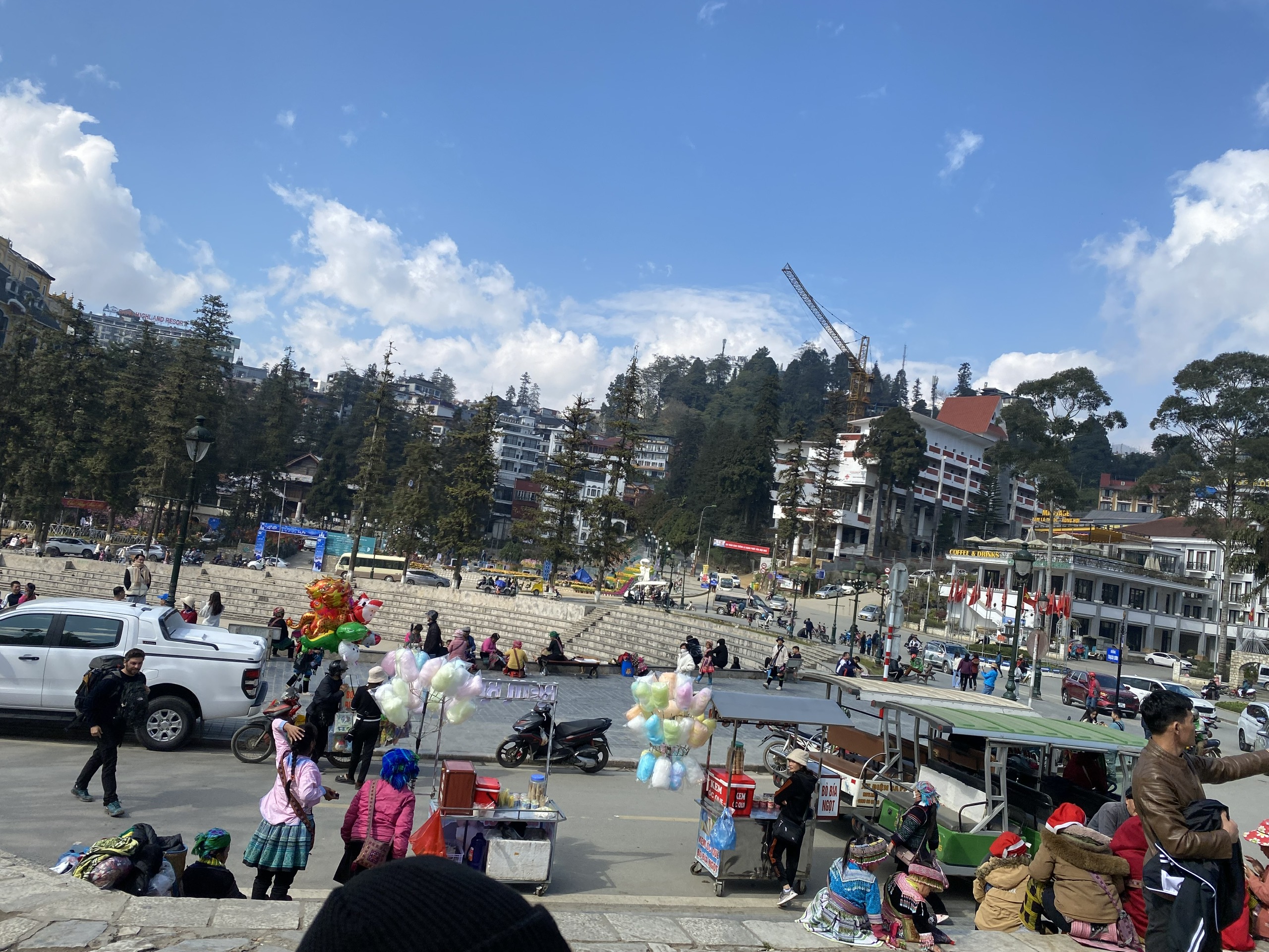 Cuối chiều, chúng tớ đã đi chợ Sapa để mua đồ ăn cho bữa tối. Chúng tớ đã quyết định tự nấu lẩu ăn cho bè mồm – Chi nói vậy ? , vì thấy đó là một cách thú vị và tiết kiệm. Chợ Sapa thực sự lớn và đa dạng, có nhiều loại hàng hóa và đặc sản. Chúng mình đã chia nhau ra làm nhiều việc. Mình và Đăng đứng trông cá tầm 2.15kg, Hương đưa tôi 500 nghìn và khẳng định chắc nịch là thừa :>, và kết quả thì ai cũng biết. Giang buồn ngủ nên coi xe, để tránh bị mất cắp. Chi, Hương và Long vô chợ mua nốt đồ làm lẩu với đồ ăn vặt. Và chuẩn bị lên đường về homestay thôi nào
