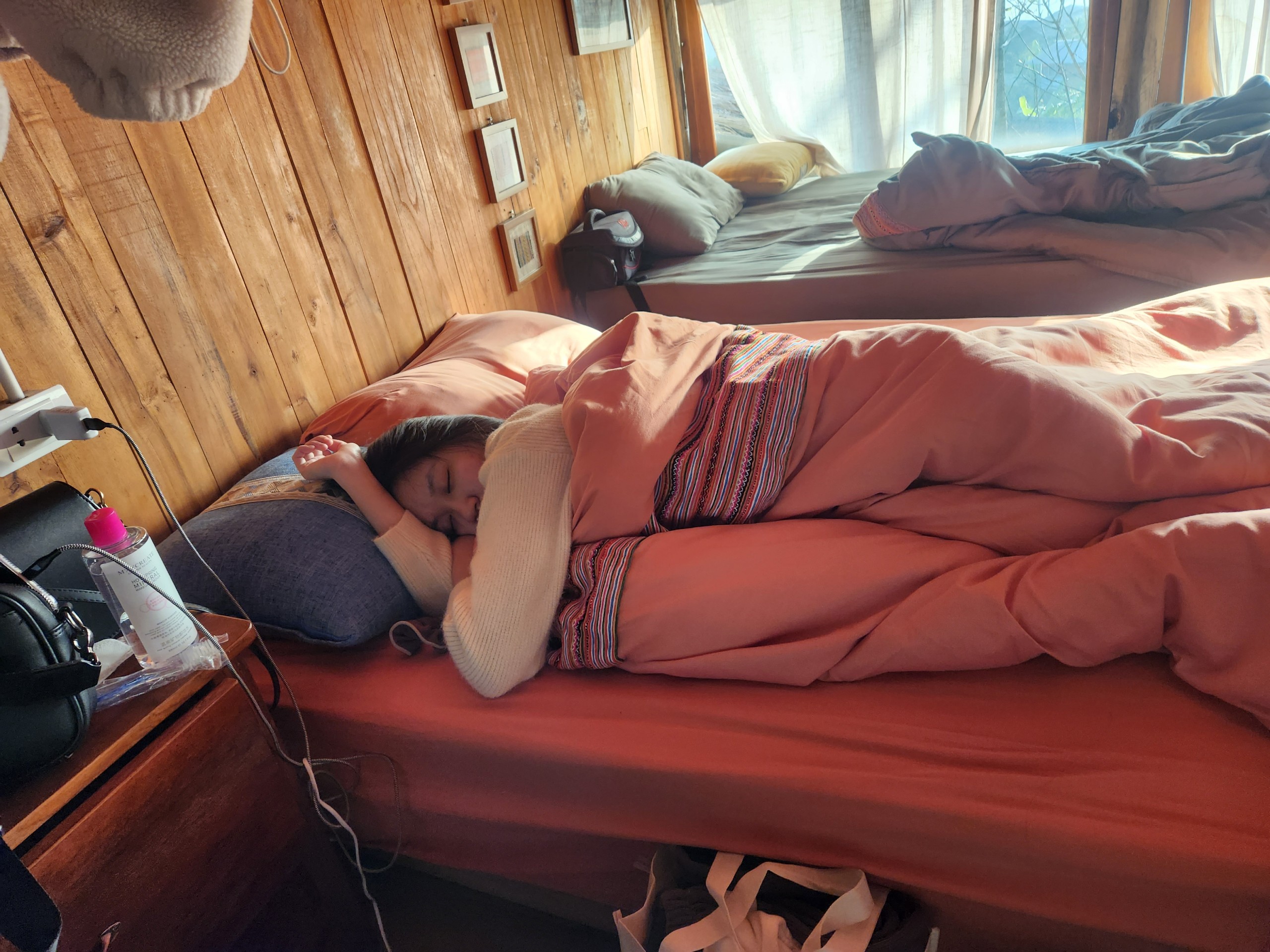 Phòng của chúng mình rất ấm cúng và sạch sẽ, có cả bình nước nóng và ga điện. Tuy nhiên, tất cả chỉ có 2 tiếng để ngủ, vì mọi người muốn dậy sớm để khám phá Sapa.
